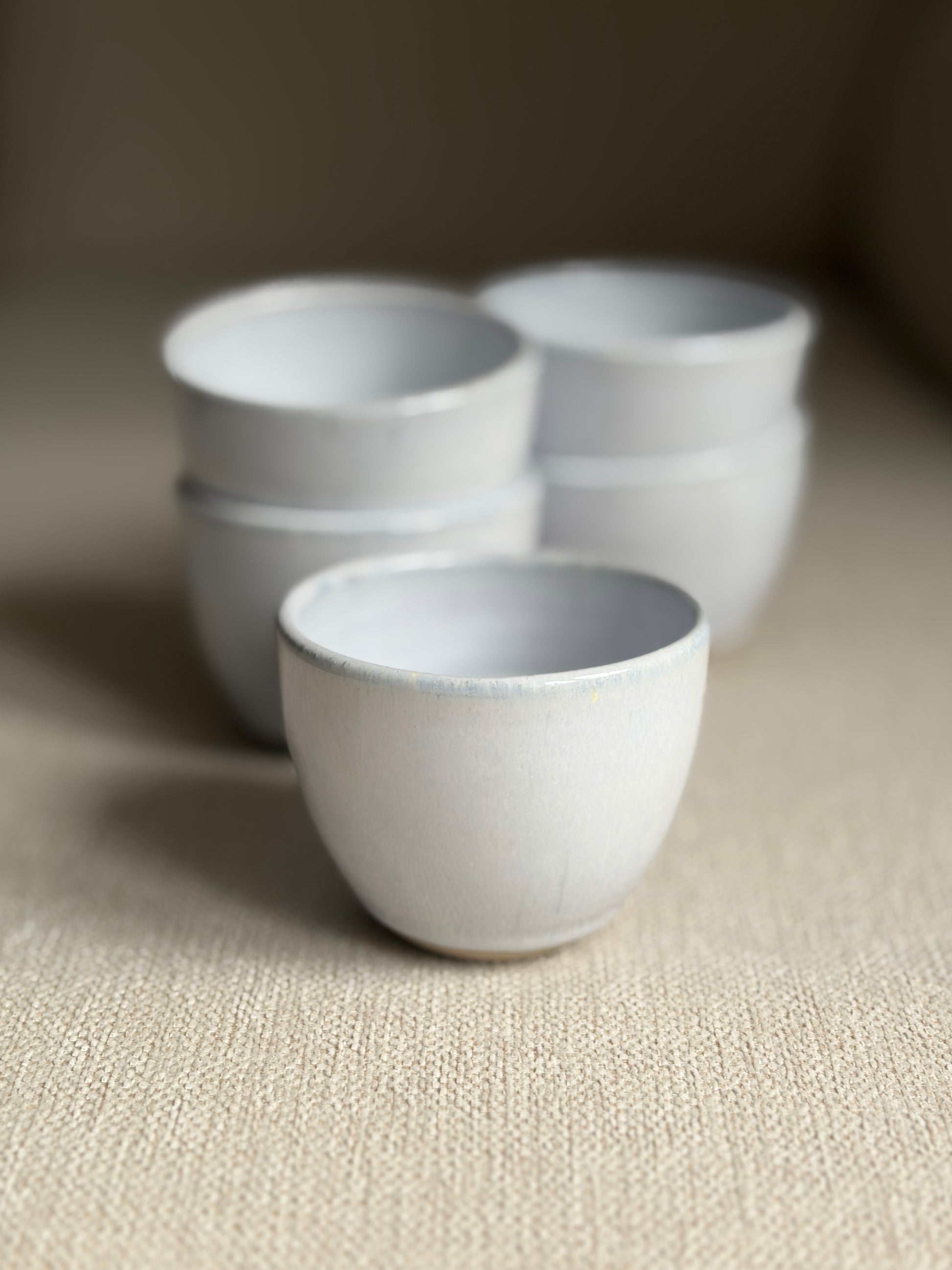Aus dem kleinen, eisblauen Kaffeebecher ohne Henkel schmeckt dein Kaffee, Tee oder Matcha besonders gut – die kompakt...