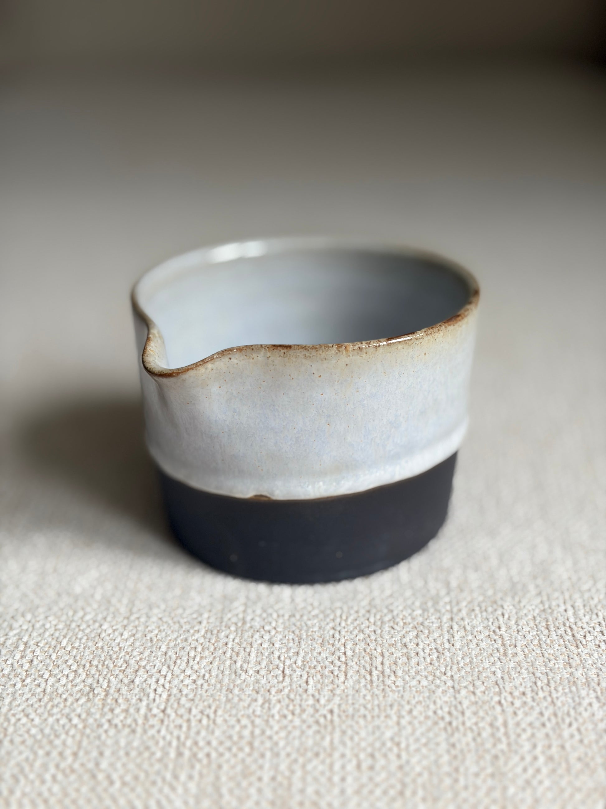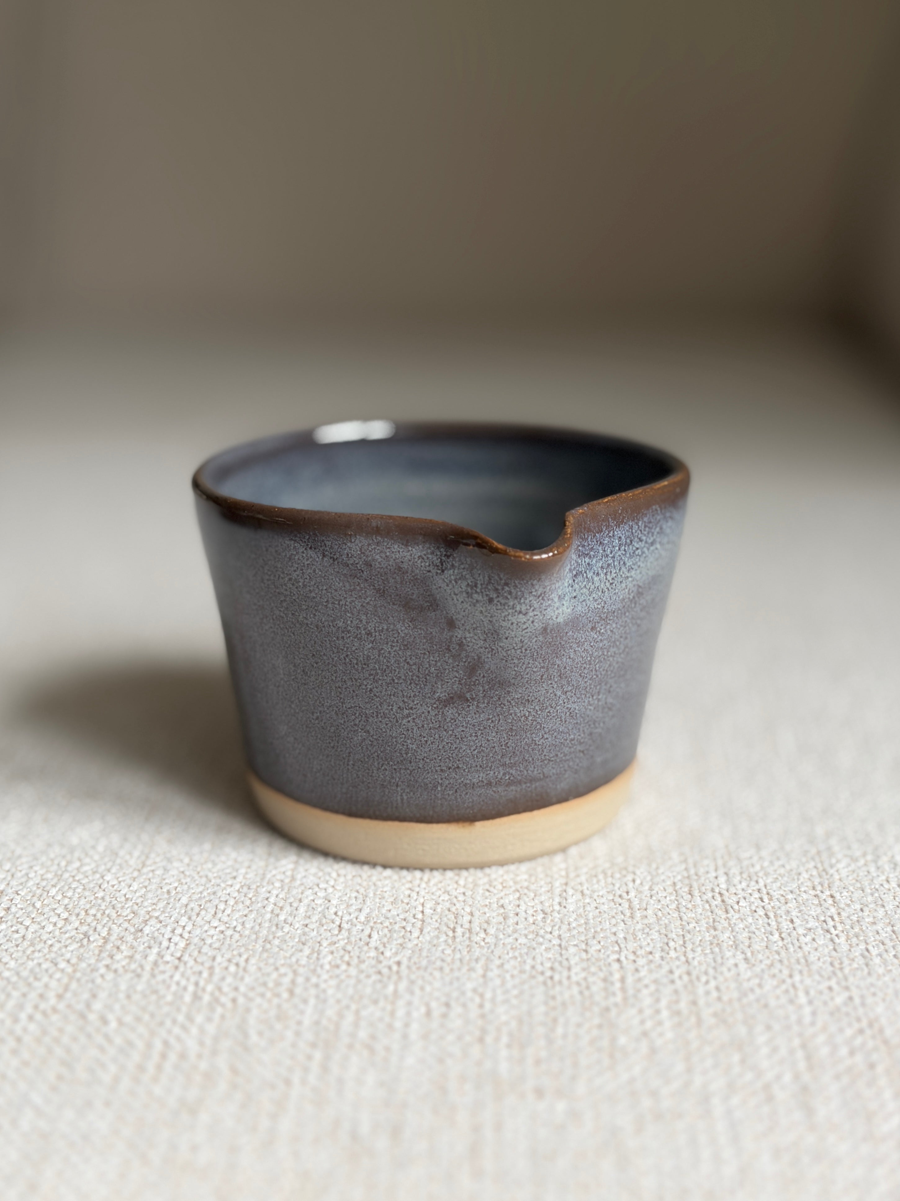 Das konische Milchkännchen überzeugt mit seiner geradlinigen Form und dem kleinen Ausgießer, der das Eingießen besonders leicht macht. Sein elegantes Design fügt sich liebevoll in jeden Kaffeegenuss ein. In Eisblau und Graublau auf hellem Ton oder in Eisblau auf schwarzem Ton erhältlich.