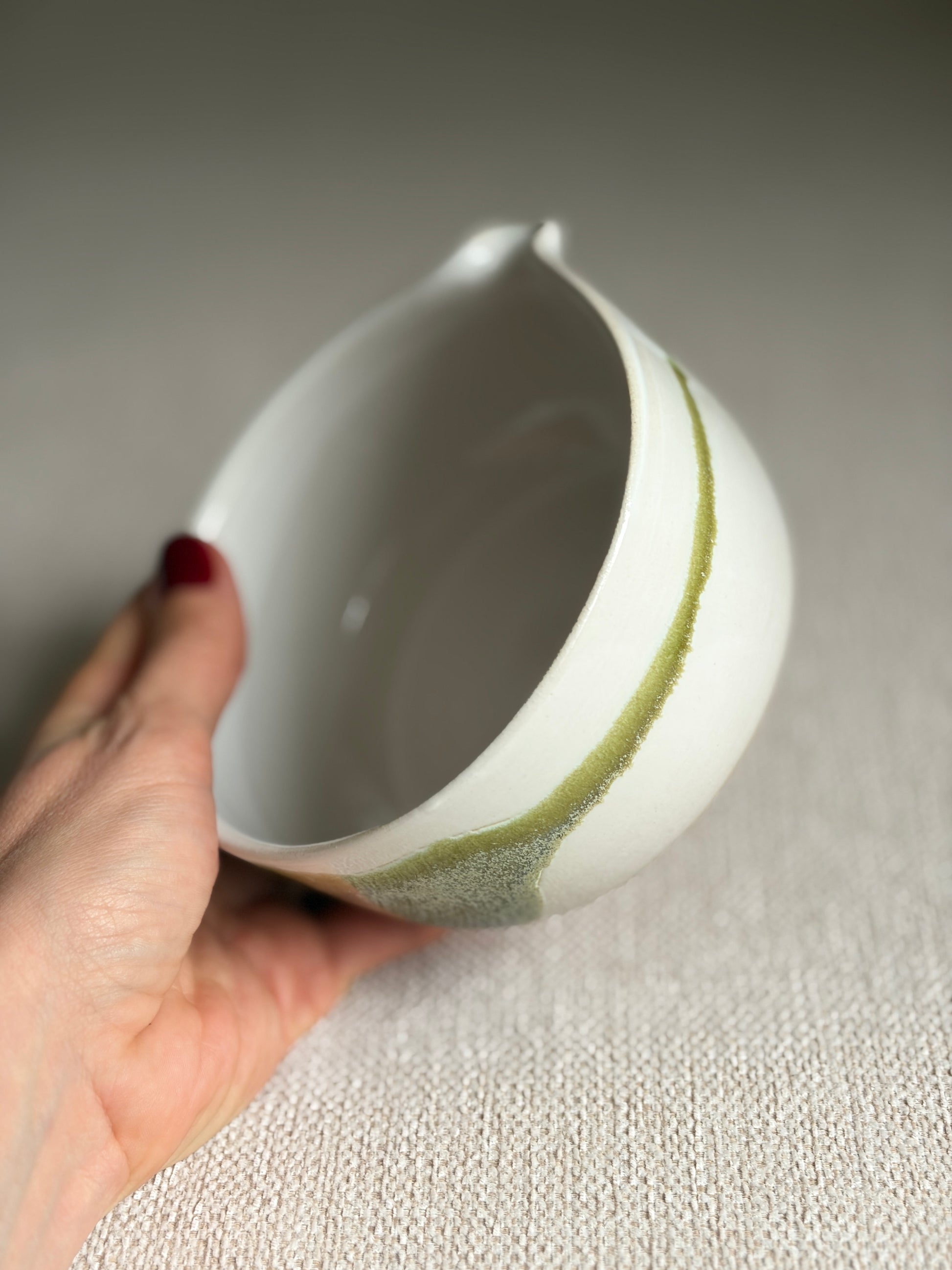In dieser Matchaschale, mit weißer und grüner Glasur kannst du deinen Matcha perfekt zu b...
